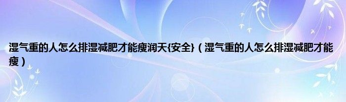 大家好,湿气重的人怎么排湿减肥才能瘦润天{安全},湿气重的人怎么排湿减肥才能瘦很多人还不知道,现在让我们一起来看看吧!