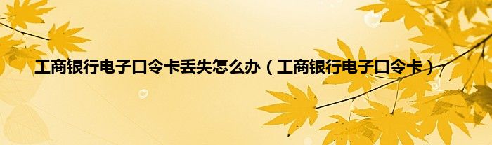 以上就是【工商银行电子口令卡丢失怎么办,工商银行电子口令卡】相关内容。