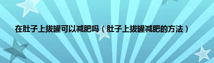 大家好,在肚子上拔罐可以减肥吗,肚子上拔罐减肥的方法很多人还不知道,现在让我们一起来看看吧!