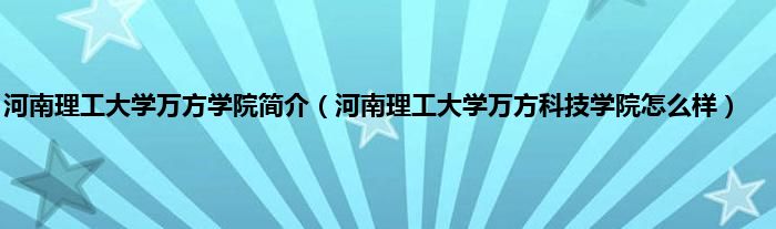 以上就是【河南理工大学万方学院简介,河南理工大学万方科技学院怎么样】相关内容。
