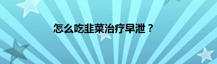 最佳答案大家好,怎么吃韭菜治疗早泄?很多人还不知道,现在让我们一起来看看吧!1、 韭菜籽一般指韭菜籽。2、用红茶泡韭菜籽有助于改善早泄,通常适用于性欲低下等亚健康状态的人群。3、浸籽韭菜酒具有补肾壮阳、固精止遗、暖胃健脾的功效,通常用于改善脾肾阳虚引起的阳痿早泄。4、但需要注意的是,韭菜籽...