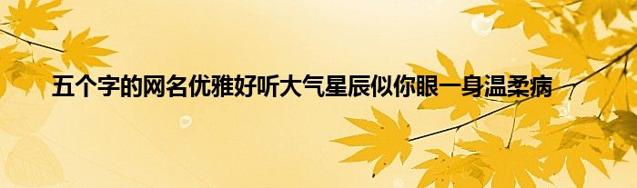 大家好,小问来为大家解答以上问题。五个字的网名优雅好听大气星辰似你眼一身温柔病这个很多人还不知道,现在让我们一起来看看吧!