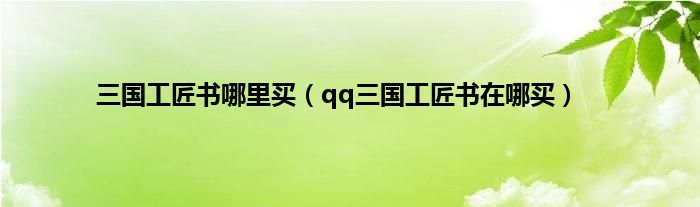 以上就是【三国工匠书哪里买,qq三国工匠书在哪买】相关内容。