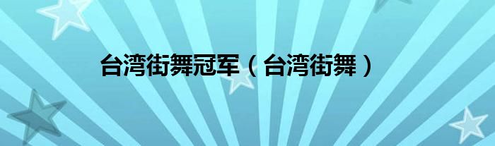 大家好,小问来为大家解答以上问题。台湾街舞冠军,台湾街舞这个很多人还不知道,现在让我们一起来看看吧!