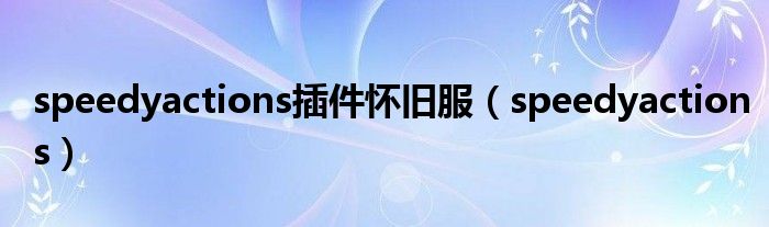 大家好,小问来为大家解答以上问题。speedyactions插件怀旧服,speedyactions这个很多人还不知道,现在让我们一起来看看吧!