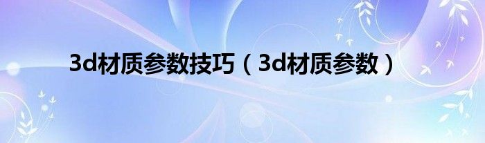 大家好,小问来为大家解答以上问题。3d材质参数技巧,3d材质参数这个很多人还不知道,现在让我们一起来看看吧!