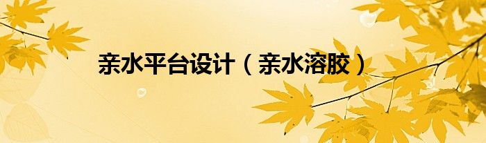 以上就是【亲水平台设计,亲水溶胶】相关内容。