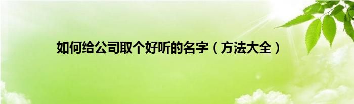 大家好,综合小编来为大家讲解下。如何给公司取个好听的名字,方法大全这个很多人还不知道,现在让我们一起来看看吧!