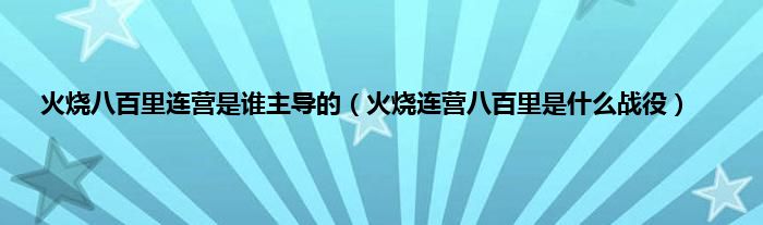 大家好,火烧八百里连营是谁主导的,火烧连营八百里是什么战役很多人还不知道,现在让我们一起来看看吧!