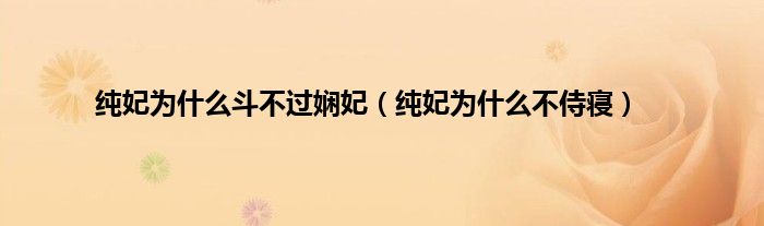 本文,纯妃为什么斗不过娴妃,纯妃为什么不侍寝到此就分享完毕,希望对大家有所帮助。