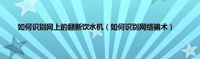 本文,如何识别网上的翻新饮水机,如何识别网络骗术到此就分享完毕,希望对大家有所帮助。