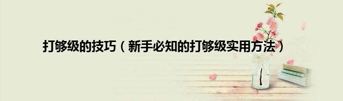 本文,打够级的技巧,新手必知的打够级实用方法到此就分享完毕,希望对大家有所帮助。