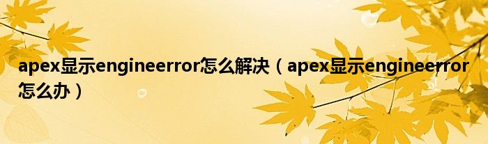 大家好,apex显示engineerror怎么解决,apex显示engineerror怎么办很多人还不知道,现在让我们一起来看看吧!