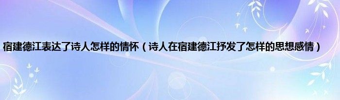 本文,宿建德江表达了诗人怎样的情怀,诗人在宿建德江抒发了怎样的思想感情到此就分享完毕,希望对大家有所帮助。