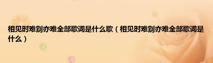 本文,相见时难别亦难全部歌词是什么歌,相见时难别亦难全部歌词是什么到此就分享完毕,希望对大家有所帮助。