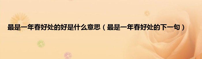 本文,最是一年春好处的好是什么意思,最是一年春好处的下一句到此就分享完毕,希望对大家有所帮助。