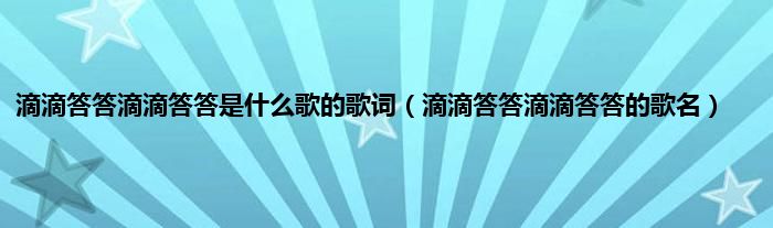 本文,滴滴答答滴滴答答是什么歌的歌词,滴滴答答滴滴答答的歌名到此就分享完毕,希望对大家有所帮助。