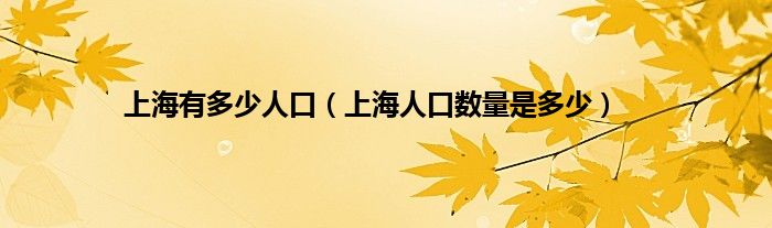 本文,上海有多少人口,上海人口数量是多少到此就分享完毕,希望对大家有所帮助。