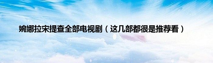 本文,婉娜拉宋提查全部电视剧,这几部都很是推荐看到此就分享完毕,希望对大家有所帮助。