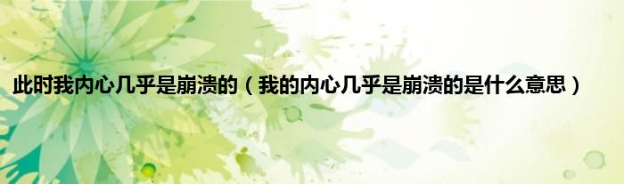 大家好,此时我内心几乎是崩溃的,我的内心几乎是崩溃的是什么意思很多人还不知道,现在让我们一起来看看吧!