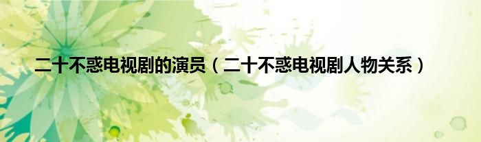 本文,二十不惑电视剧的演员,二十不惑电视剧人物关系到此就分享完毕,希望对大家有所帮助。